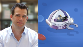 Links: Dirk Brenner, Luxembourg Institute of Health; rechts: Cartoon einer regulatorischen T-Zelle, dargestellt als Sicherheitswächter des Immunsystems