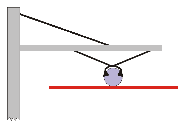 Figure schématique : LAC maintenue par des pinces (en noir). Archet du pantographe en rouge.