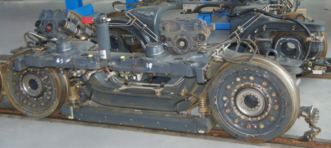 Photo (gauche) : Bogie sans moteurs