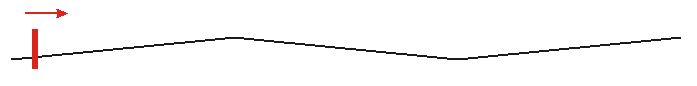Figure schématique : Vue d'en haut: LAC en zigzag, archet du pantographe en rouge