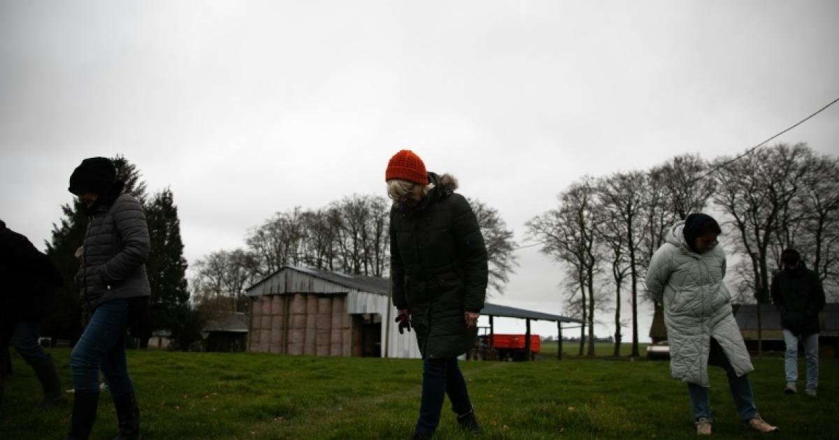 Des volontaires à la recherche de météorites après la chute de l'astéroïde 2023 CXI, le 17 février 2023 à Angiens (Seine-Maritime)