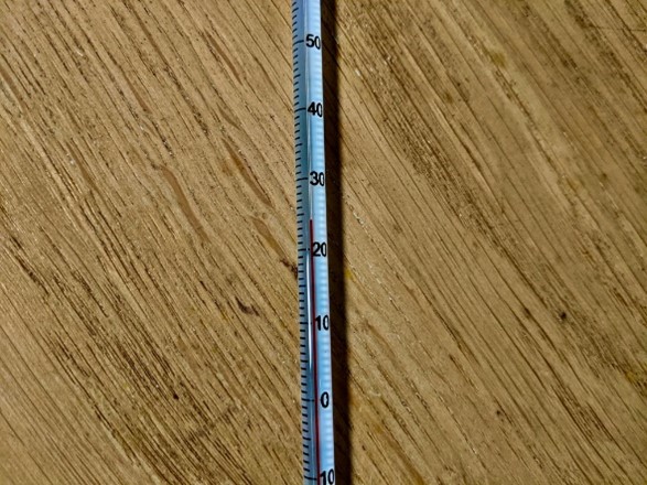 - Notiere die Temperatur, die dein Thermometer vor Beginn des Experimentes anzeigt.