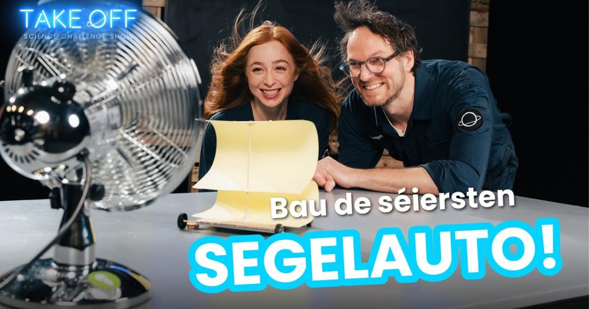In the Take-Off Challenge, students build a vehicle that moves exclusively with the help of wind energy. The goal is to construct a sail car that covers a distance of 3 meters as quickly as possible using the wind from a fan.