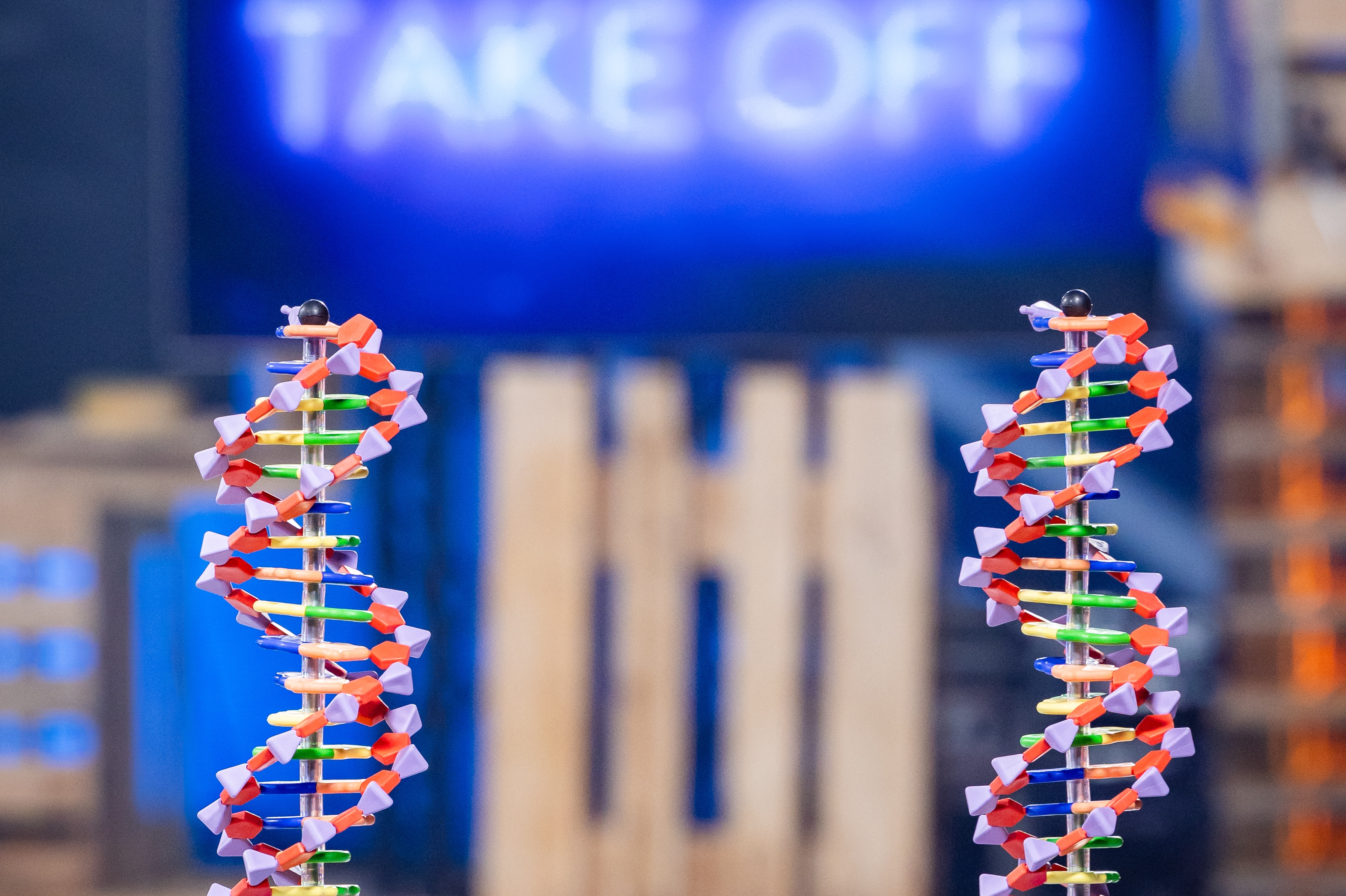 Two DNA models, one crucial mutation: In Take Off, the candidates search under time pressure for the change that turns a healthy cell into a tumor cell.