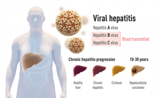 Figure 1. There are two main forms of hepatitis, which can form both acute and chronic liver inflammation. One form is an acute disease caused by Hepatitis A virus that is transmitted by contaminated water or food. The other form is caused by Hepatitis B virus or Hepatitis C virus (this year’s Nobel prize). This form of blood-borne hepatitis is often a chronic disease that may progress to cirrhosis and liver cancer (hepatocellular carcinoma) if not diagnosed early and treated adequately. (Illustration: The Nobel Assembly)