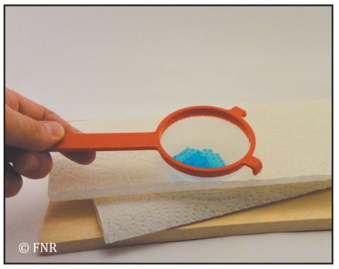 Aus einer Alginatlösung entstehen blaue Kügelchen