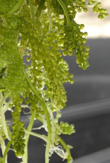 Ebenfalls aus Asien kommt der Kaviar der Meere. So nennt man Meerestrauben (Caulerpa lentillifera), eine Art von Algen, die kleine, salzwassergefüllte Kügelchen bildet. Neben Proteinen und ungesättigten Fettsäuren glänzen sie mit sekundären Pflanzenstoffen wie Antioxidantien. Roh gegessen, bereichern sie in China, Japan und Vietnam schon länger den Speiseplan. Bei uns sind sie hingegen noch kein offizielles Nahrungsmittel.