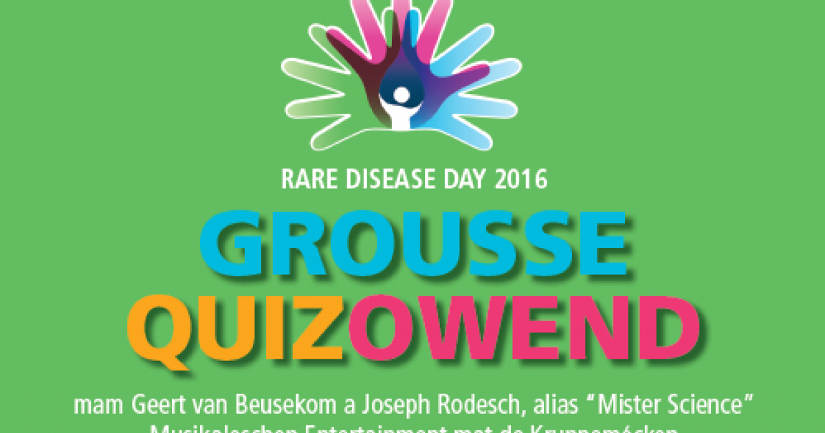 Pour la deuxième année consécutive, l’association ALAN Maladies Rares Luxembourg et le Luxembourg Institute of Health s’associent pour sensibiliser le grand public Luxembourgeois au sujet des maladies rares et organisent, samedi 27 février 2016, une soirée « Quiz » à l’occasion de la Journée Mondiale des Maladies Rares. Organisée à partir de 18 h dans la salle des fêtes du Château de Mamer, la soirée sera animée (en luxembourgeois) par Geert van Beusekom, responsable de la Maison des Jeunes Mamer,Joseph Rodesch, le fameux « Mister Science », et mise en musique par le duo « Krunnemécken » .