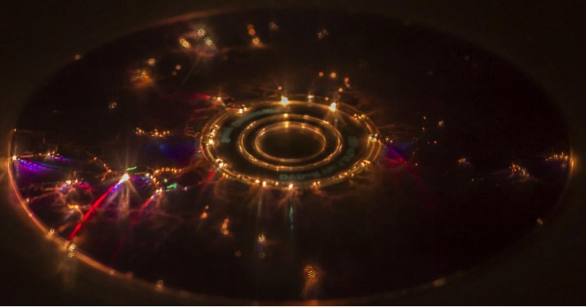 Lege eine alte CD mit der Aufschrift nach unten in den Mikrowellenherd und stelle diesen für 5 Sekunden auf Maximalleistung ein. Beobachte ein kurzes Feuerwerk.