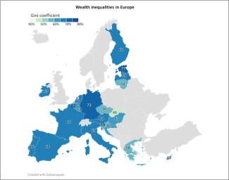 Die Ungleichheiten sind bei den Vermögen deshalb größer, weil Reichtum sich tendenziell anhäuft. In den meisten Ländern Europas liegt der Gini-Koeffizient zwischen 60 und 70 %. Das bedeutet, dass der Vermögensunterschied zwischen zwei zufällig ausgewählten Haushalten etwa bei einem Drittel des Durchschnittsvermögens liegt. In Luxemburg beträgt das Durchschnittsvermögen etwa eine Million Euro, der mittlere Unterschied also etwa 300.000 Euro.