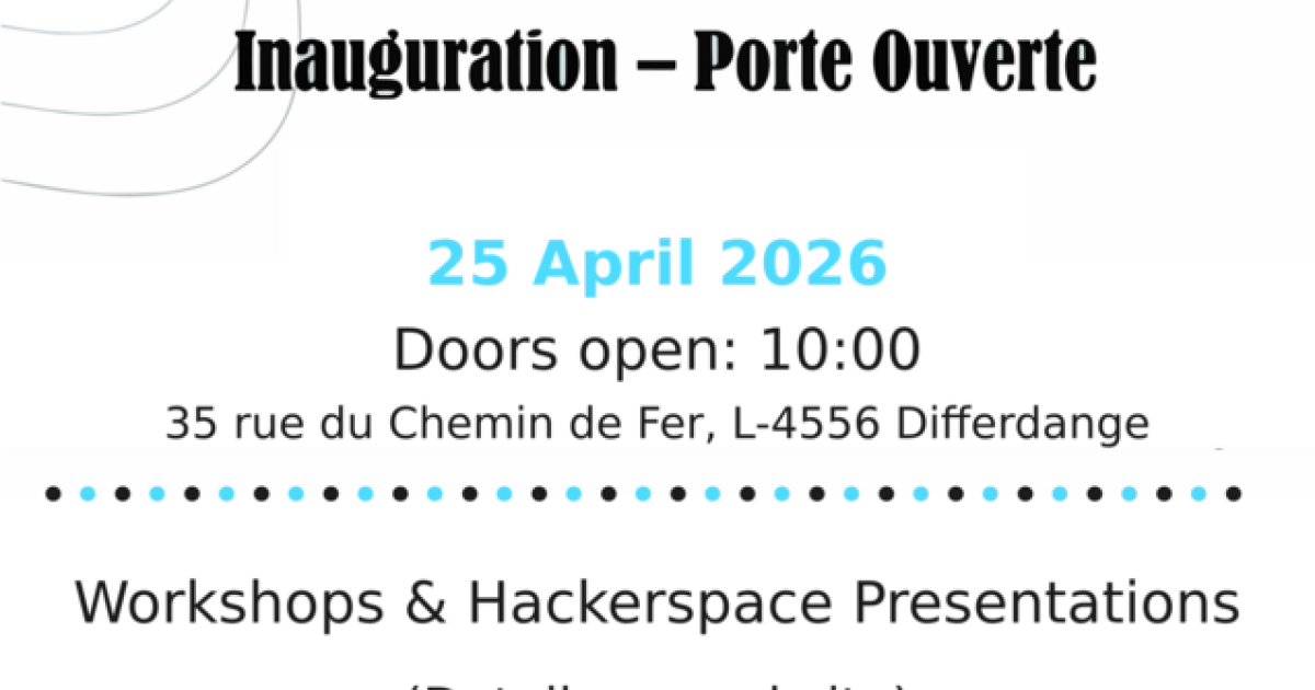 Wir freuen uns riesig, euch mitteilen zu können, dass wir am 25. April die offizielle Einweihung unseres brandneuen Hackerspace „Warp3“ in Differdange feiern werden. Nach unserem erfolgreichen Umzug von Level2 in Bonnevoie nach Differdange sind wir froh, dass die Einrichtung nun abgeschlossen ist, und können es kaum erwarten, diesen unglaublichen neuen Raum gemeinsam mit der Community zu feiern. Freut euch auf einen fantastischen Tag voller Workshops! Wir haben ein vollgepacktes Programm mit spannenden Themen wie Löten, 3D-Druck, Robotik und vielem mehr. Wir würden uns riesig freuen, wenn ihr vorbeikommt und mitfeiert! Am Abend gibt es ein tolles Barbecue und Musik!