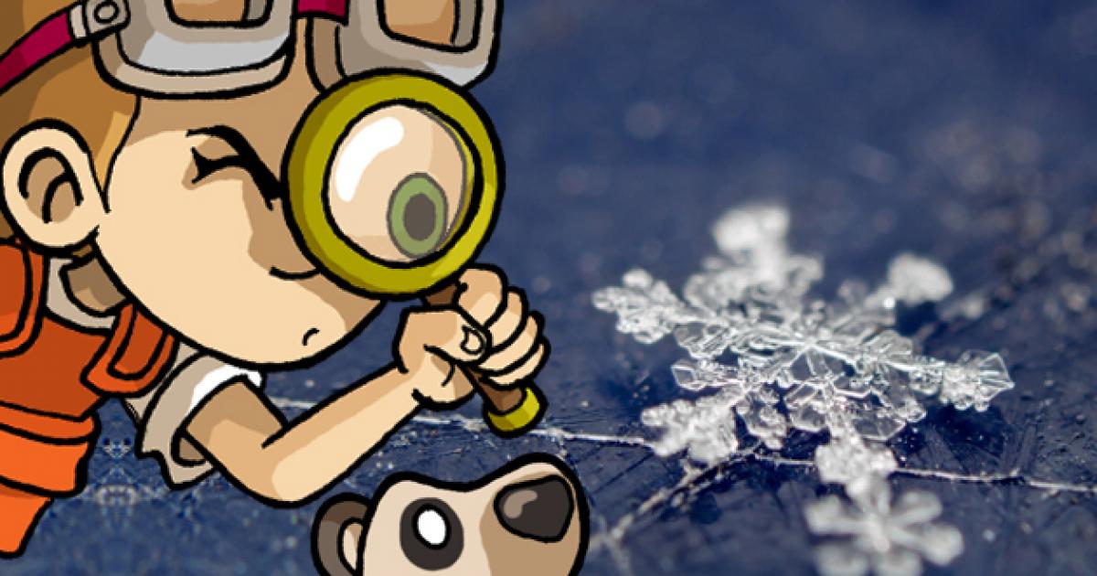 Je höher es geht, desto kälter wird es. In 6000 Metern Höhe ist es oft schon eisige minus 24 Grad Celsius kalt. Die kalte Luft kann die Wasserteilchen aber nicht gut halten. Zum Glück schweben auch winzige Staubpartikel in der Atmosphäre. An die lagert sich der Wasserdampf. Im Winter, wenn es ganz besonders kalt ist, gefriert er an den kleinen Staubteilchen zu winzigen Eiskristallen. Nouga staunt. „Das also ist der Schnee?“, fragt er. „Fast“, sagt Tonie van Dam: „Eine Schneeflocke entsteht, wenn mehrere Eiskristalle in der Luft zusammenstoßen und sich miteinander verbinden. Die Eiskristalle werden immer größer und fallen schließlich als Schneeflocken auf die Erde. Dort bilden dann viele Schneeflocken zusammen unseren Schnee.“