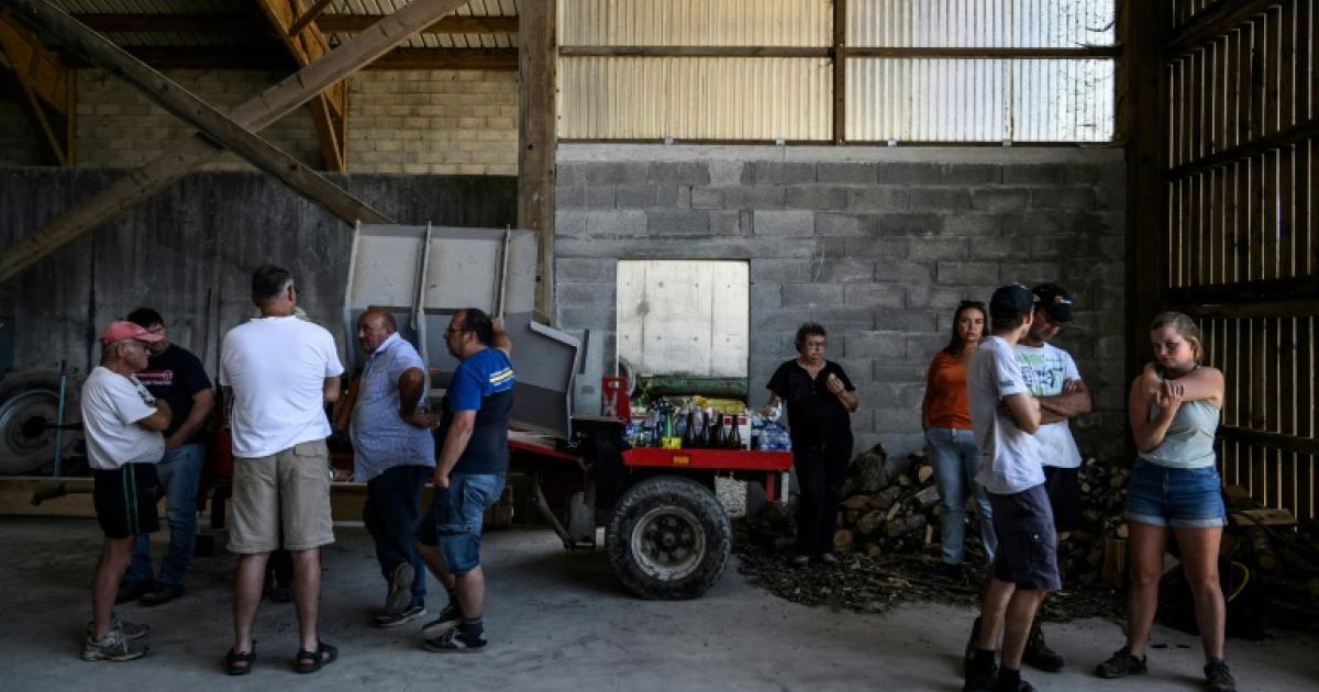 Eleveurs et voisins réunis dans une exploitation pour empêcher l'euthanasie par les services vétérinaires d'un cheptel de bovins après un cas de dermatose nodulaire, le 11 juillet 2025 à Entrelacs, en Savoie