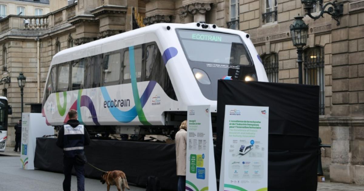 Il faisait encore nuit noire vendredi matin quand un semi-remorque transportant un petit train unique en son genre a traversé Paris. Direction l'Elysée. Le prototype de la navette ferroviaire Ecotrain, tout juste sorti d'atelier, est montré pour la première fois au public.