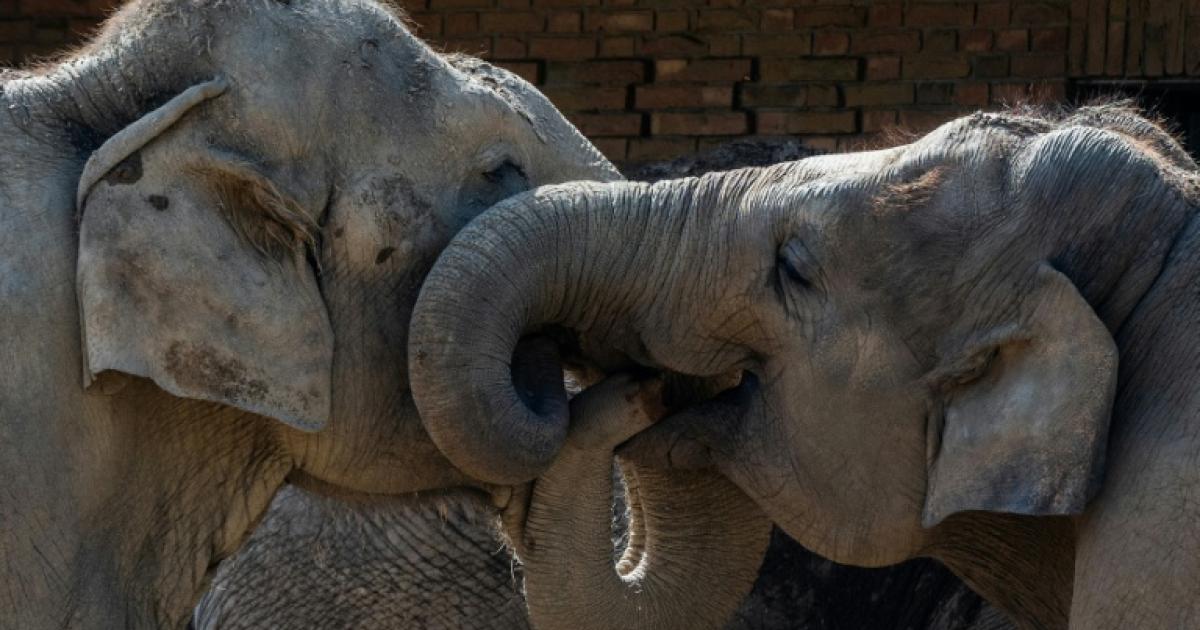 Deux éléphants au zoo de Berlin, le 16 avril 2025