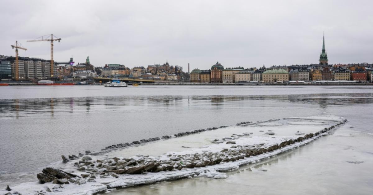 Les vestiges d'une épave du XVIIe siècle après leur réapparition à Stockholm, en Suède, le 17 février 2026
