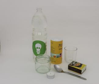 Faites attention en manipulant la flamme nue de la bougie. Les cheveux longs doivent être attachés en arrière. Notez également que le vinaigre est un acide faible et qu’il convient d’éviter tout contact avec les yeux ou les muqueuses. Éventuellement porter des lunettes de protection. Se laver les mains après l’expérience ou porter des gants en caoutchouc.