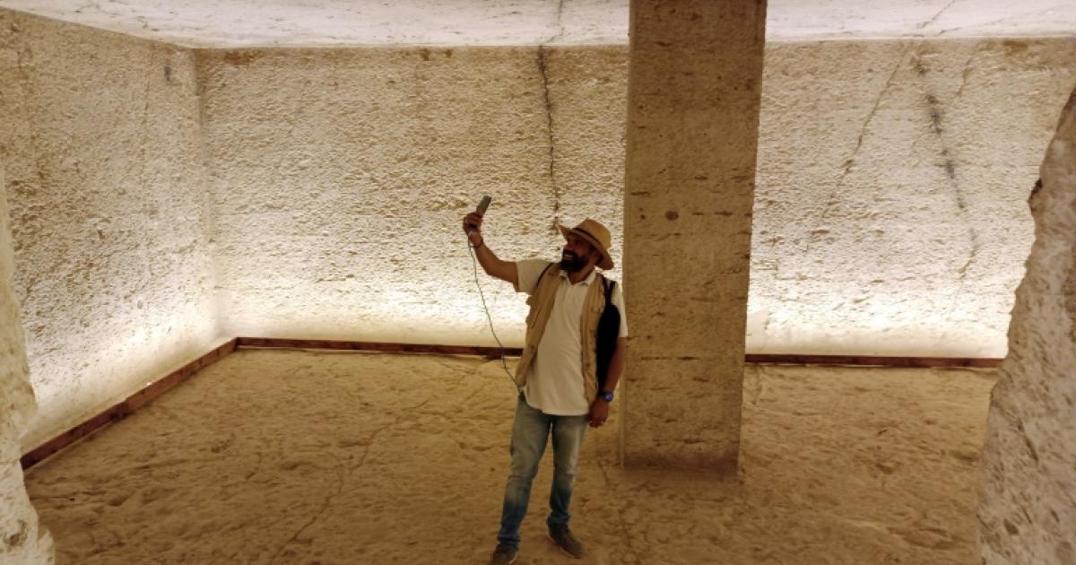Un touriste visite le tombeau du roi Amenhotep III dans la Vallée des Rois, près de la ville de Louxor, lors de son ouverture officielle au public après des années de restauration, le 4 octobre 2025 en Egypte
