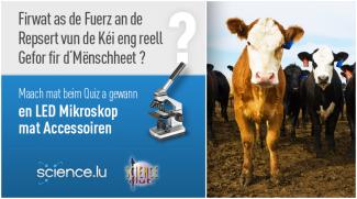 Du hues tëschtent 11 an 18 Joer? Da maach mat beim Science Club News Quiz a beäntwert d'Fro: Firwat ass de Fuerz an de Repsert vun de Kéi eng reell Gefor fir d‘Mënschheet ?